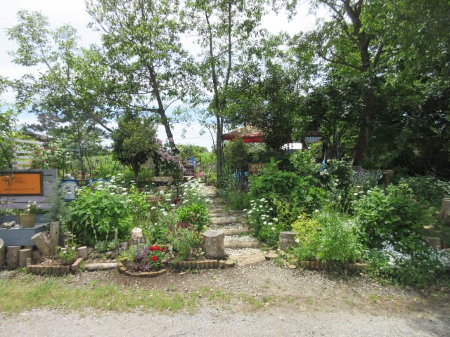 お店の前には、まるで軽井沢のような素敵な庭園がありました。