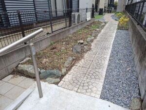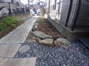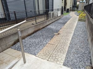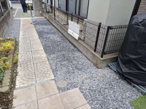流山店 榎本です。 玄関アプローチの砂利施工を行いました。 ビフォー アフター 途中経過を・・・ ゴロゴロ 見えないところの処理をキチンと 完成! I様、ありがとうございました。今後ともよろしくお願いいたします!