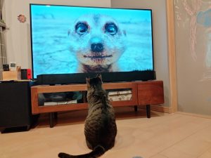 千葉店渋谷です。 先日、年末に録画していた映画『ライオンキング』を鑑賞していました。 おや? 普段あまりテレビに興味を示さない我が家の猫、カツオくん。ライオンキングをガン見してます。 たまたまかなぁと思って観察していましたが、その後もしばらくカツオの映画鑑賞は続きました。 背中に哀愁が漂います。 同じネコ科の仲間の冒険に心が躍った(?)様子のカツオくんでした。 おまけ 最近我が家で流行っているカツオの顔芸『おじいちゃん』
