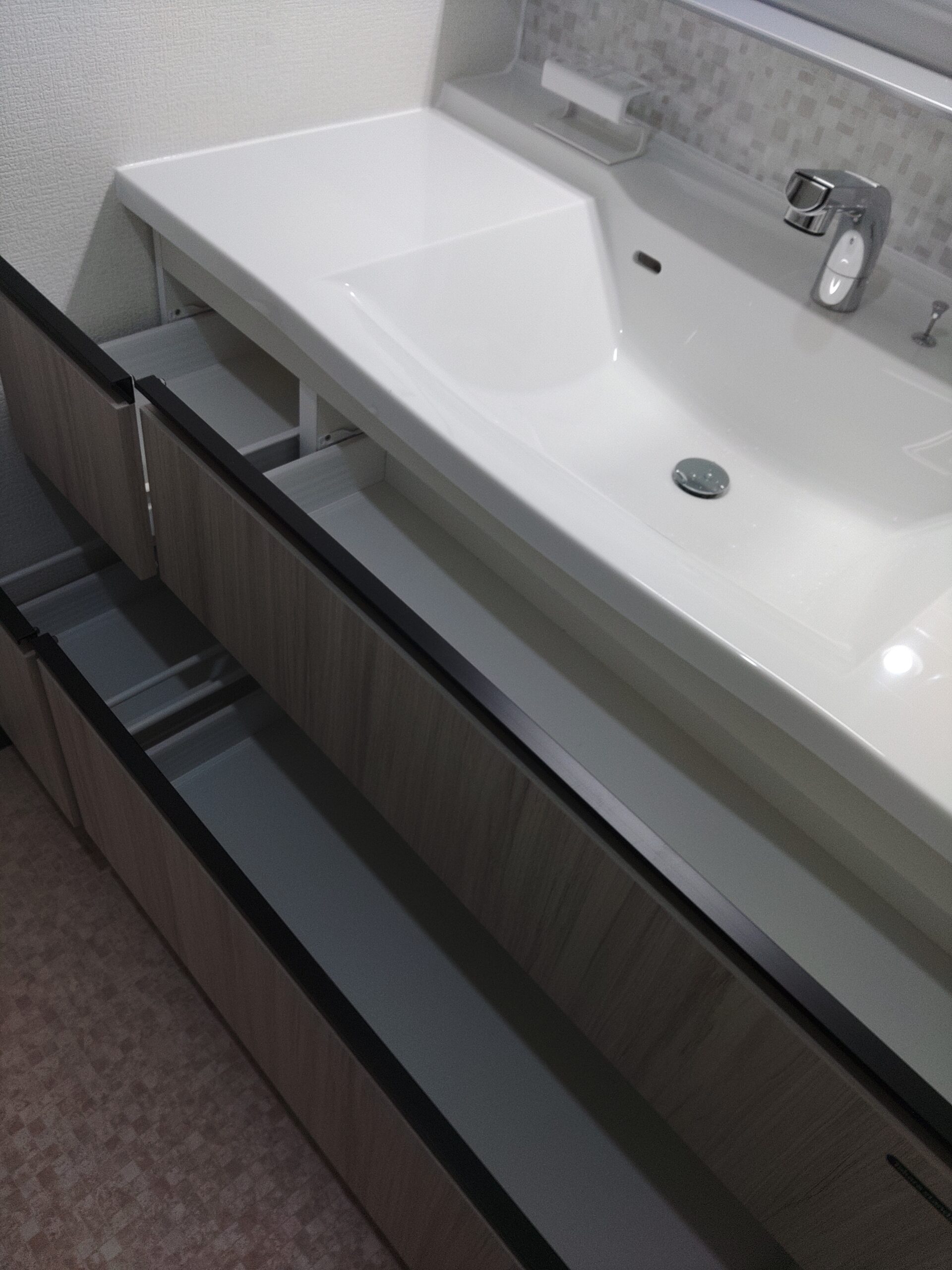 こんな素敵な洗面化粧台がつきましたが…工事中に事件が発生しました…( ゚Д゚)