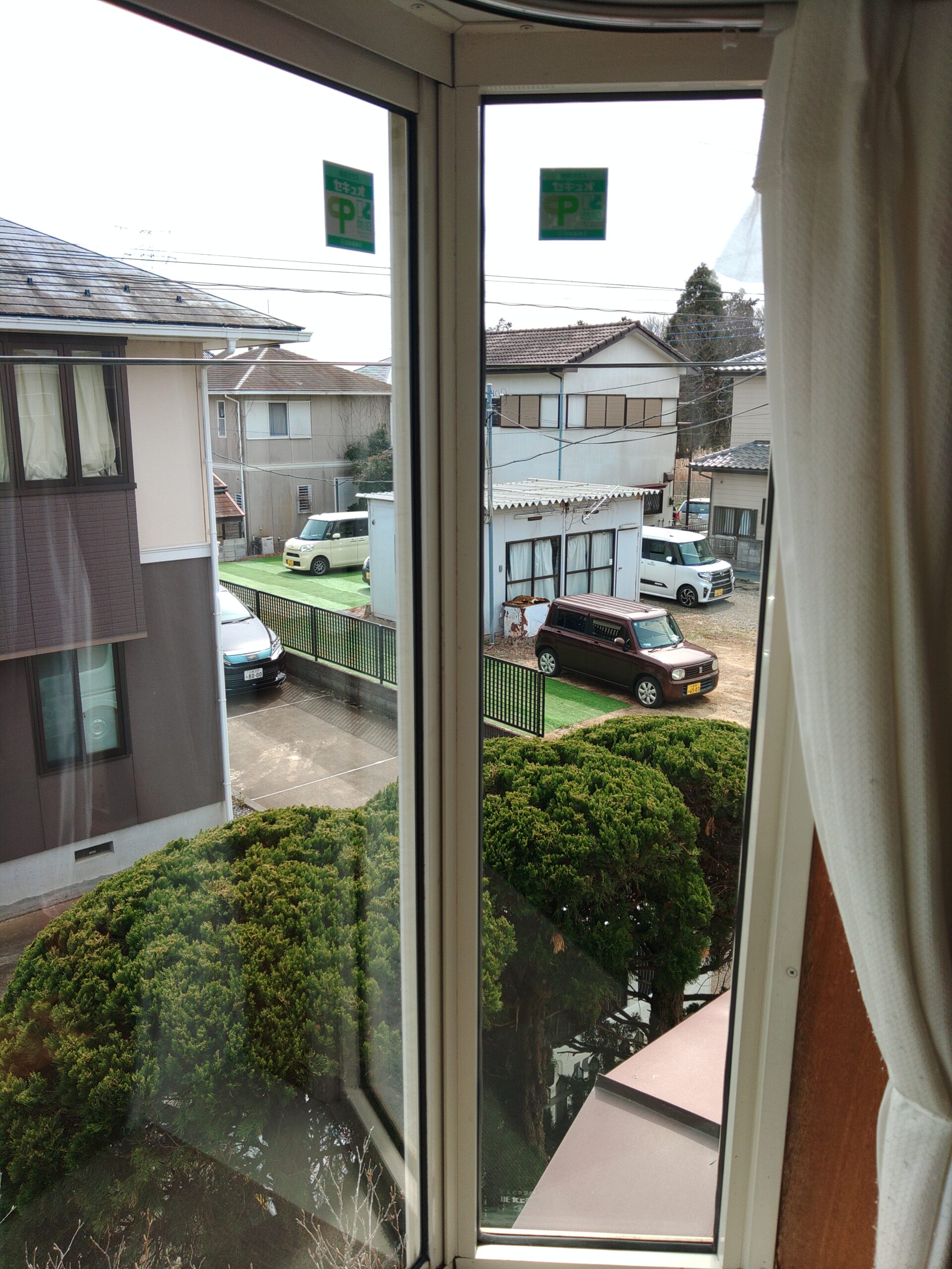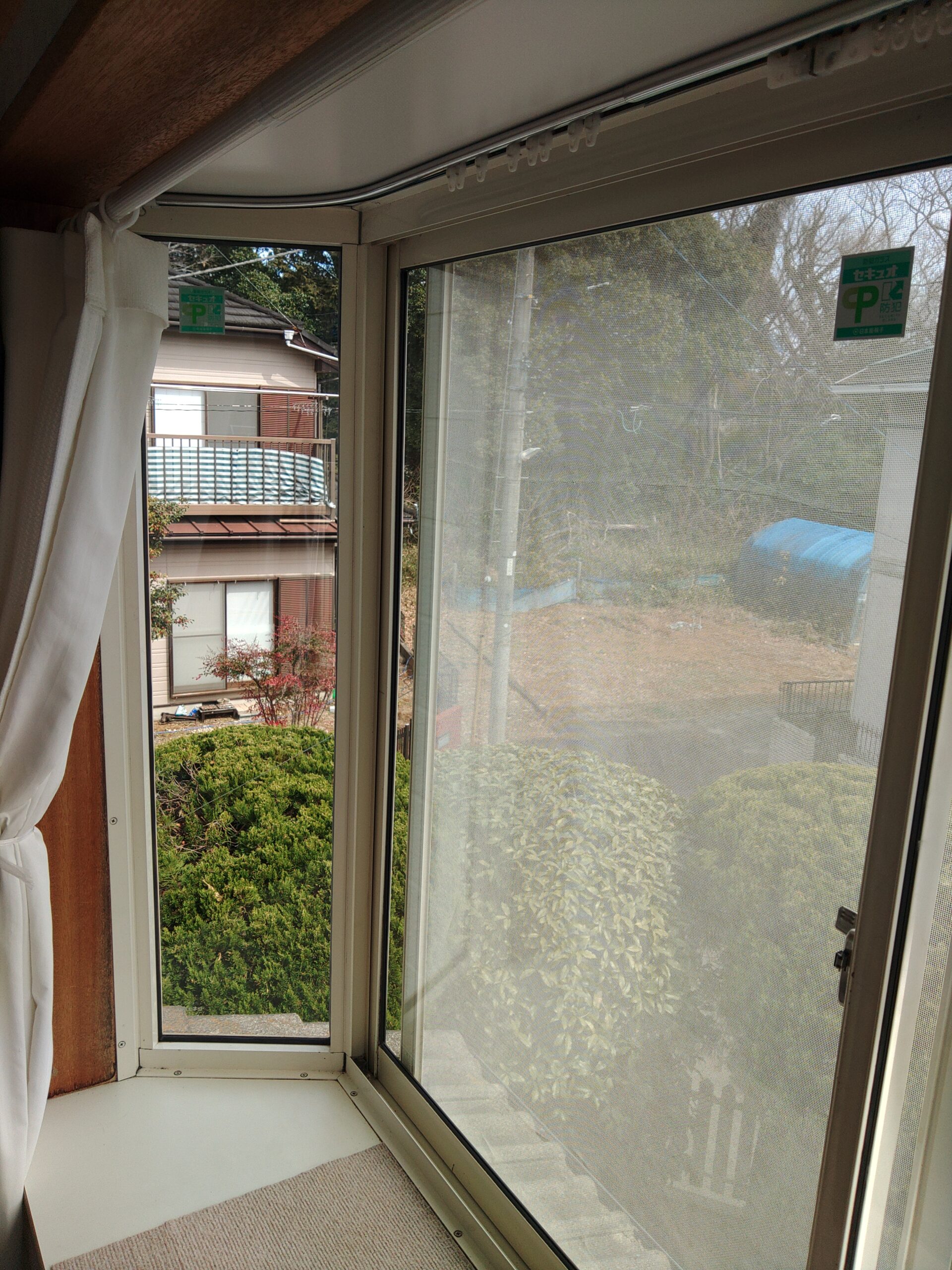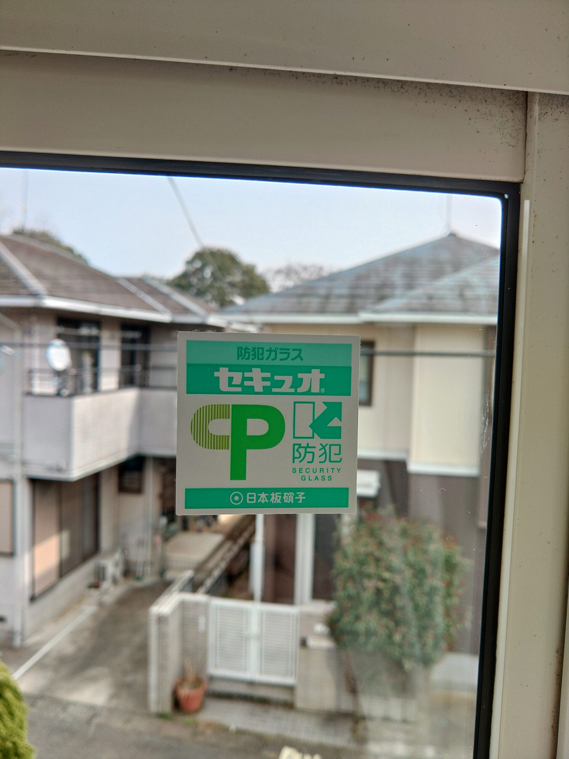 見た目では変化が分かりにくいのですが、各ガラスに貼ってある正方形の小さいシールが防犯ガラスである証明のステッカーです。